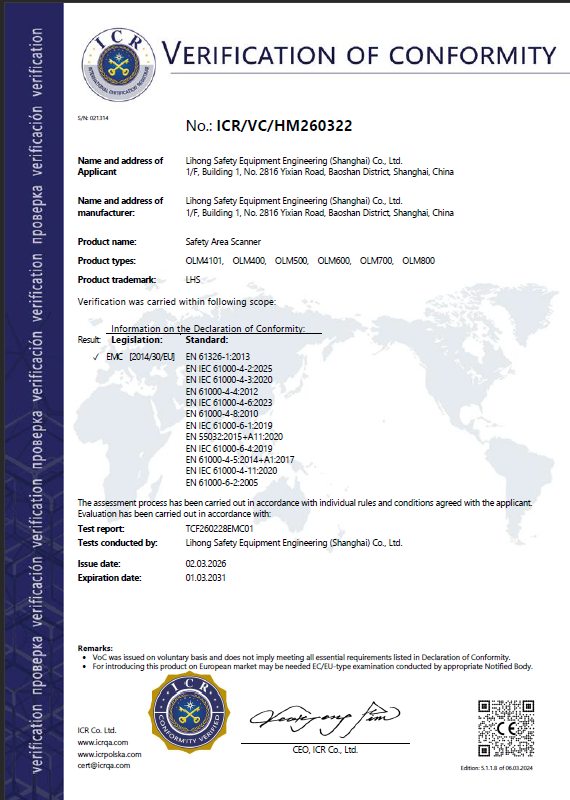 EN61326-1:2013EN61000-4-2:2009EN61000-4-3:2006+A1:2008+A2:2010
